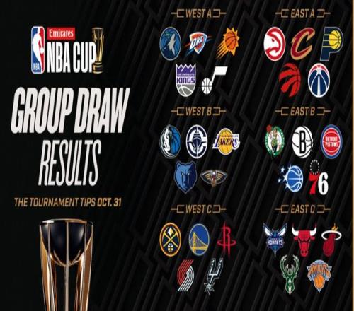 这些球场由艺术家维克多-所罗门设计,除其他独特元素外,还具备全彩绘渐变设计、各球队专属叠加图案,以及为前两届NBA杯冠军球队打造的隐藏细节。所罗门同时也是上赛季赛事球场的设计者,还曾与蒂芙尼公司合作设计NBA杯奖杯。 以下是2025年NBA杯球场设计的更多细节: 球队专属渐变色:每块球场都以主队核心颜色为基础打造渐变色。渐变角度根据球队所属分区(东部或西部)确定,为设计增添了一层微妙的结构感与象征意义。 对比色球场边缘设计:球场边缘区域采用主队耐克NBA特别版球衣的颜色,所有主队在赛事中均会穿着该版本球衣。客队则将在阿联酋航空NBA杯的比赛中穿着耐克NBA经典版球衣。 5×5马赛克网格:球场叠加有象征意义的5×5网格,既代表场上的5名球员,也象征赛事每个小组的5支球队。 中场城市标识:每块球场的中场位置都醒目展示主队所在城市或州的名称,底线处则印有球队昵称或全称。 专属叠加图案:全部30块球场均配有独特的标志、文字标识或图形叠加图案,彰显各支球队的独特身份。 隐藏细节:在密尔沃基雄鹿队和洛杉矶湖人队主场的球场中场区域,奖杯底座图案上刻有两队各自夺得NBA杯的年份。