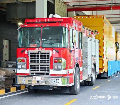 现场消防车。 在公安、消防方面,横琴公安与消防部门紧密协作,构建起高效联动的安全保障体系。住地酒店设立公安-消防联合指挥室,实现信息共享与统一调度,既提升响应效率,也践行绿色节约的办赛理念。 横琴消防大队组建专职团队,每日投入21名指战员、2辆消防车前置执勤,以“定点守卫+流动巡查+智能监控”模式,每半小时对场馆开展一次全覆盖巡查,确保风险秒级响应、动态管控。 赛事期间,每日将有超过40名安保人员值守于场馆及保障酒店一线。目前,网球中心已完成防冲撞设施建设,各项应急演练顺利结束,进一步筑牢赛事安全屏障。