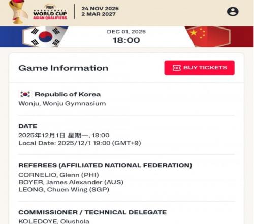 中国男篮将在12月1日客场挑战韩国男篮,现广东男篮主帅、前中国男篮主帅杜锋将解说本场比赛。至于中韩二番战的3位裁判出炉,分别是来自菲律宾、澳大利亚和新加坡的裁判,其中新加坡裁判梁俊容曾执裁过CBA。