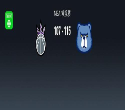 第一节国王扎克-拉文拿下9分,灰熊杰伦-威尔斯拿下8分,首节战罢国王35-31领先灰熊 第二节国王蒙克拿下6分,灰熊扎克-伊迪拿下8分,半场结束国王59-62落后灰熊 第三节国王蒙克拿下9分,灰熊扎克-伊迪拿下8分,第三节结束国王87-83领先灰熊 第四节国王德罗赞拿下6分,灰熊扎克-伊迪拿下10分,最终国王107-115不敌灰熊
