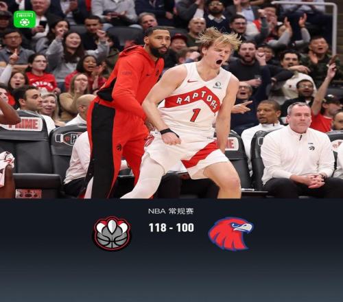 第一节猛龙斯科蒂-巴恩斯拿下9分,老鹰波尔津吉斯拿下5分,首节战罢猛龙31-26领先老鹰 第二节猛龙格雷迪-迪克拿下9分,老鹰杰伦-约翰逊拿下9分,半场结束猛龙61-49领先老鹰 第三节猛龙马穆凯拉什维利拿下6分,老鹰里萨谢拿下9分,第三节结束猛龙86-73领先老鹰 第四节猛龙RJ-巴雷特拿下12分,老鹰戴森-丹尼尔斯拿下8分,最终猛龙118-100战胜老鹰